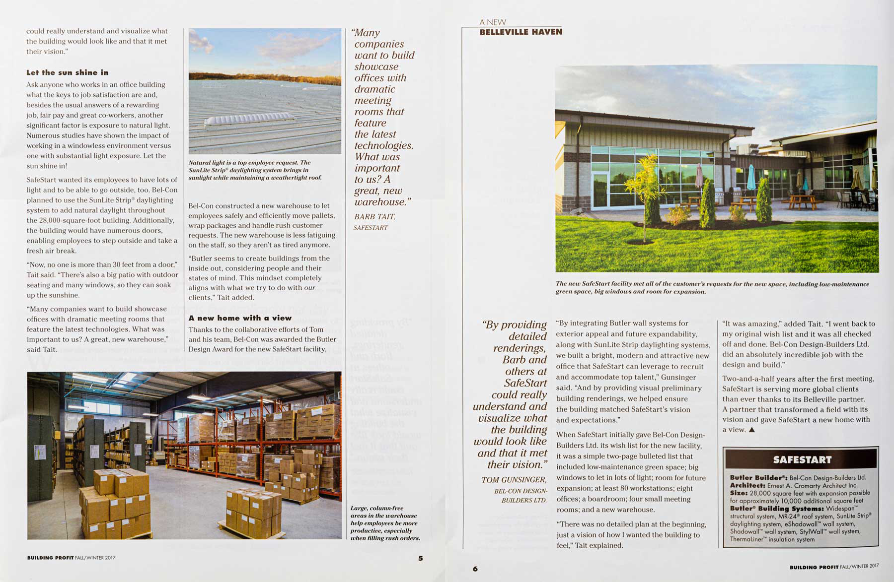 This magazine feature highlights Butler Building Systems and its real-world application at SafeStart.
