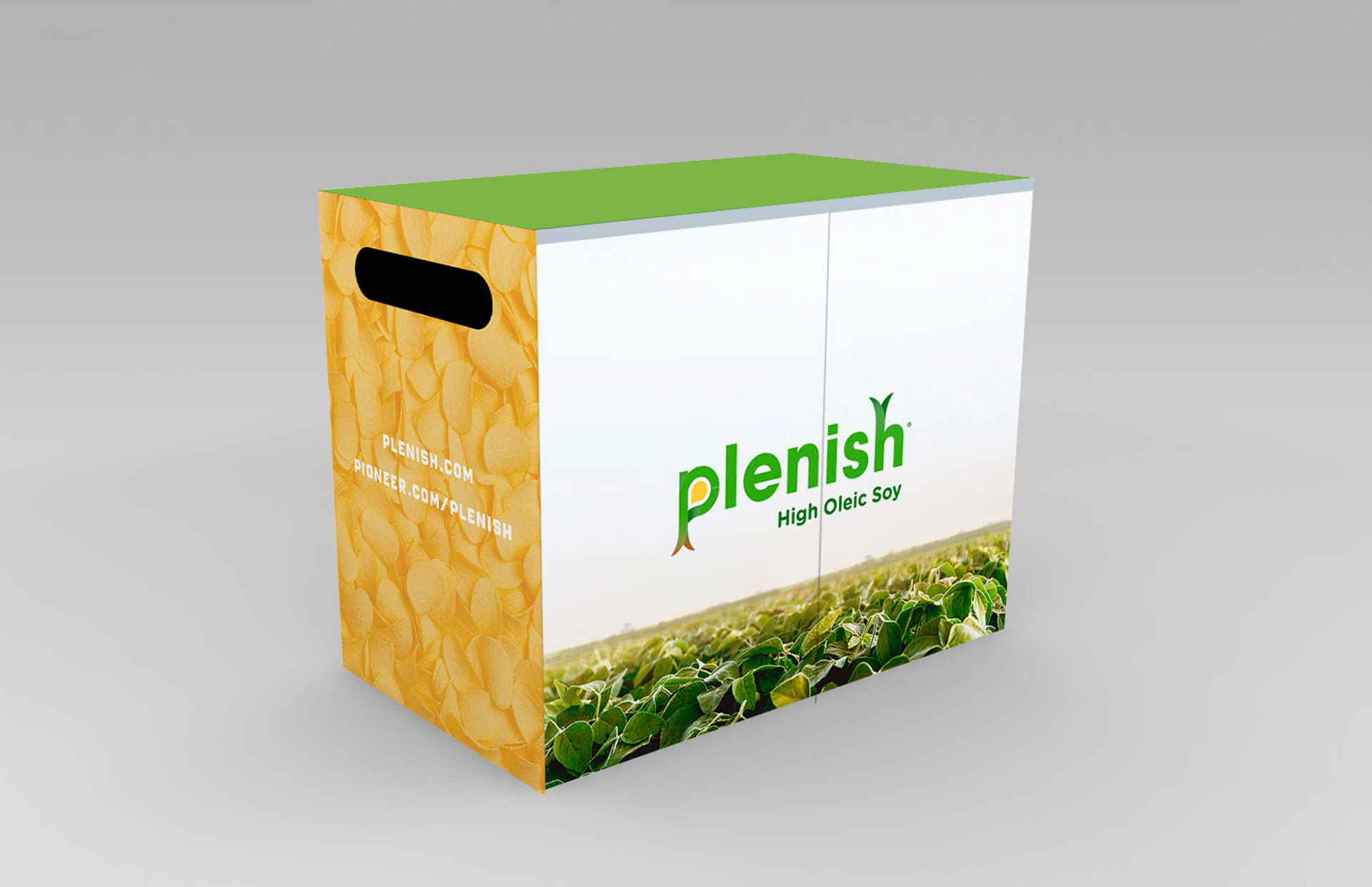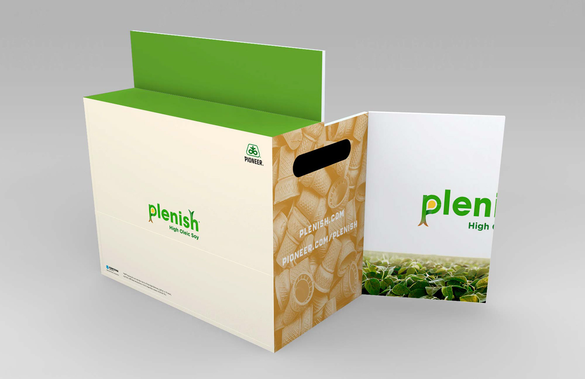 This portable sales display highlighted foods made with Plenish soybean oil. Shelves were stocked with samples so a sales rep had information and samples all in one container.