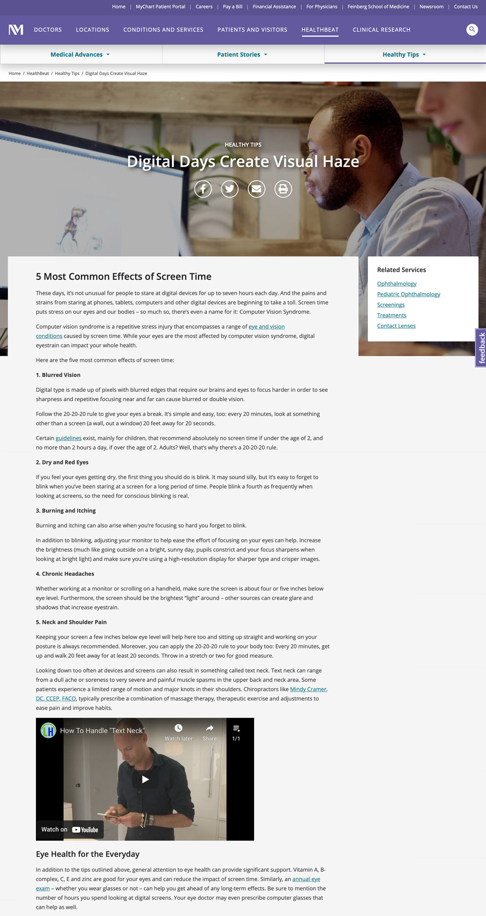 From editorial concept discussions to writing, I helped Northwestern Medicine craft topical stories for its monthly blog.